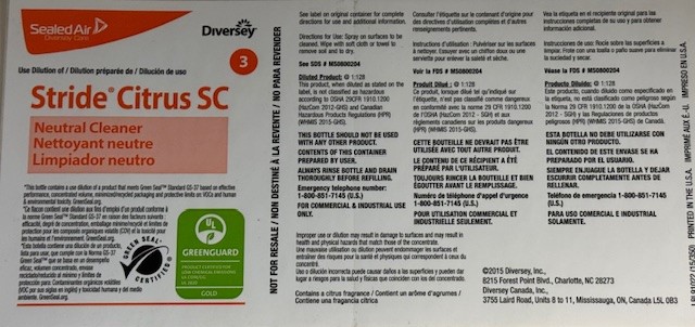 Diversey Stride Citrus HC Label, SKU LBLSTRIDECHC