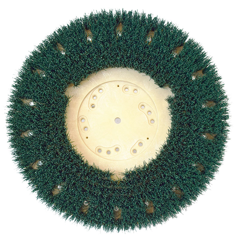 A rotary brush ideal for deep cleaning designed to fit most low speed floor machines and outlasts floor pads 100 to 1. Designed to remove worn finishes, soils, scuffs, and spills and to prepare surfaces for re-coating. Replaces the use of a green general scrubbing pad.