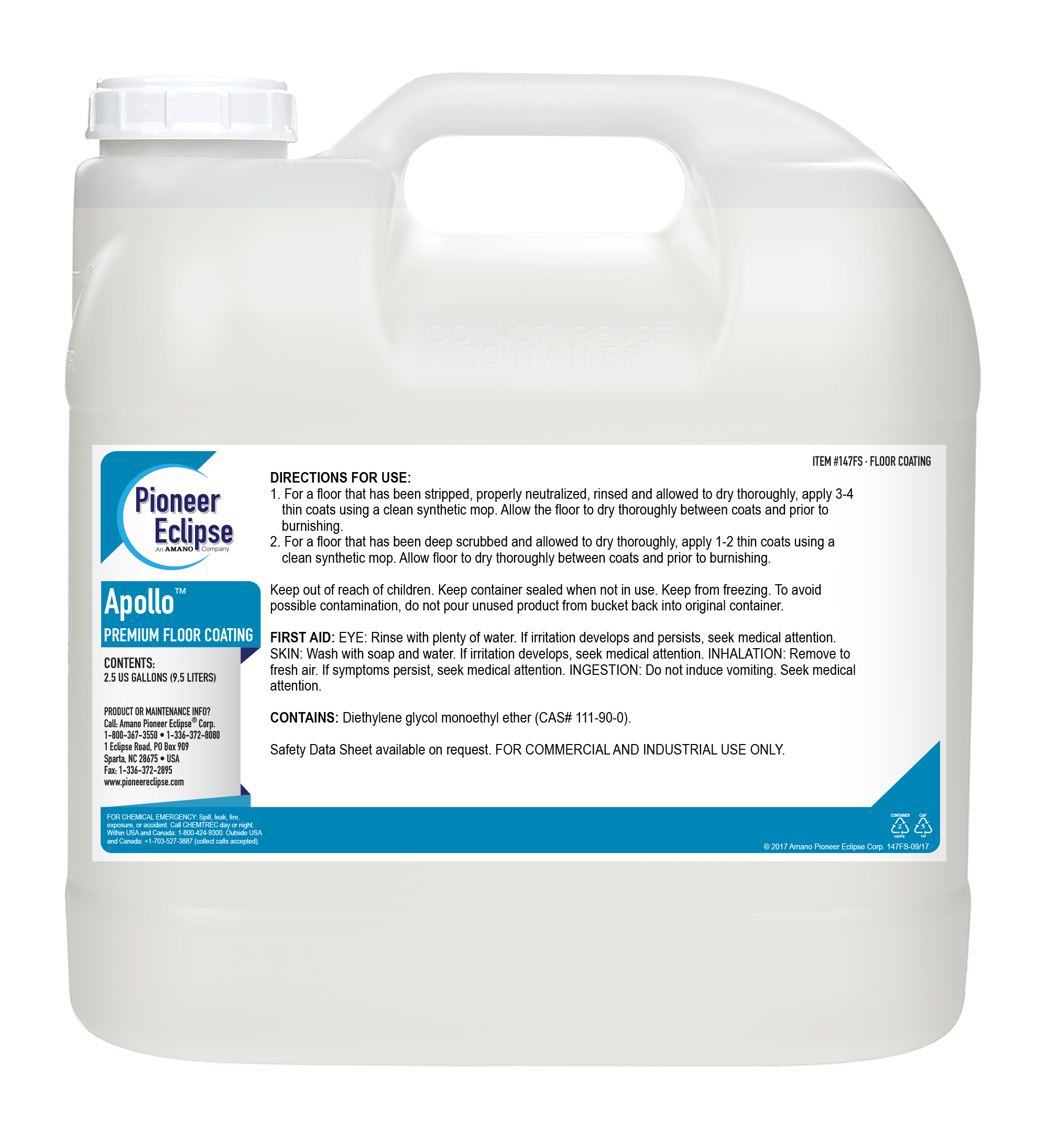 Pioneer Eclipse Apollo Ultra High Speed Floor Finish – 2.5 Gallon Bottle – 2 Bottles/Case