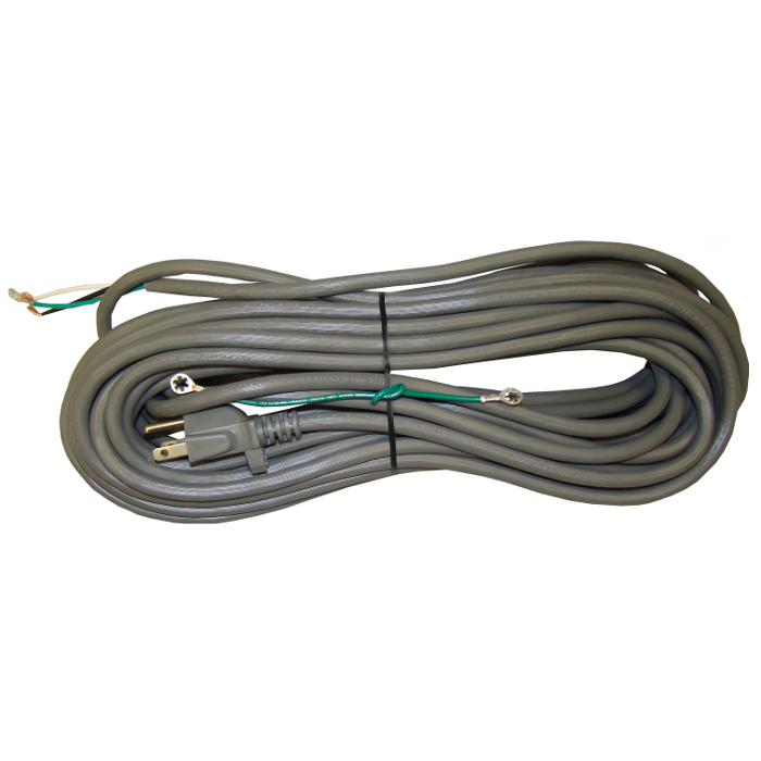 A 50′ 18 gauge, 3 wire vinyl heavy duty vacuum power cord that is universal to work with any commercial vacuum.