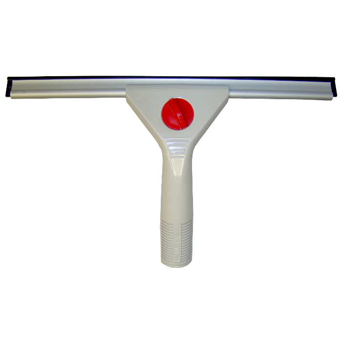 A lightweight 12″ plastic window squeegee that withstands heat, chemicals, water, and cleaning solutions.